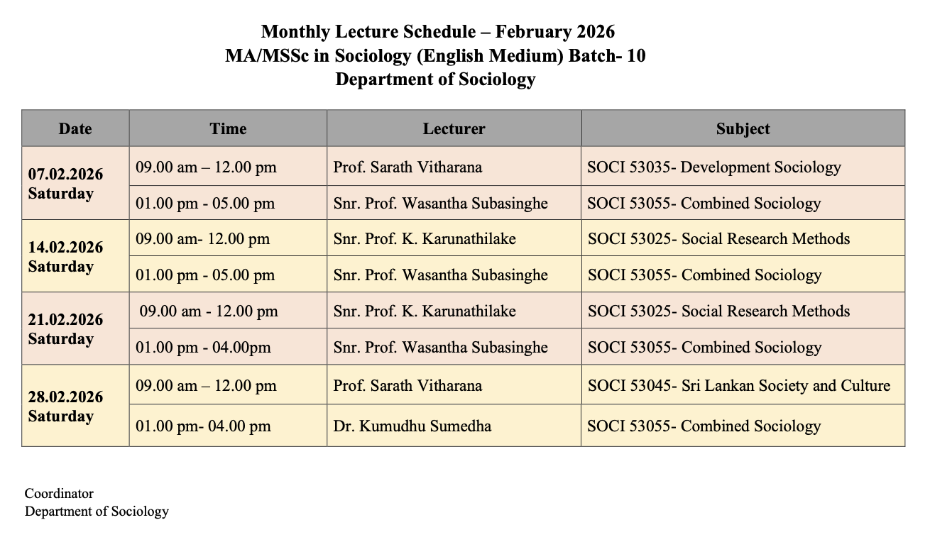 Master of Arts and Master of Social Sciences Degree Programmes in Sociology (Sinhala and English Medium)