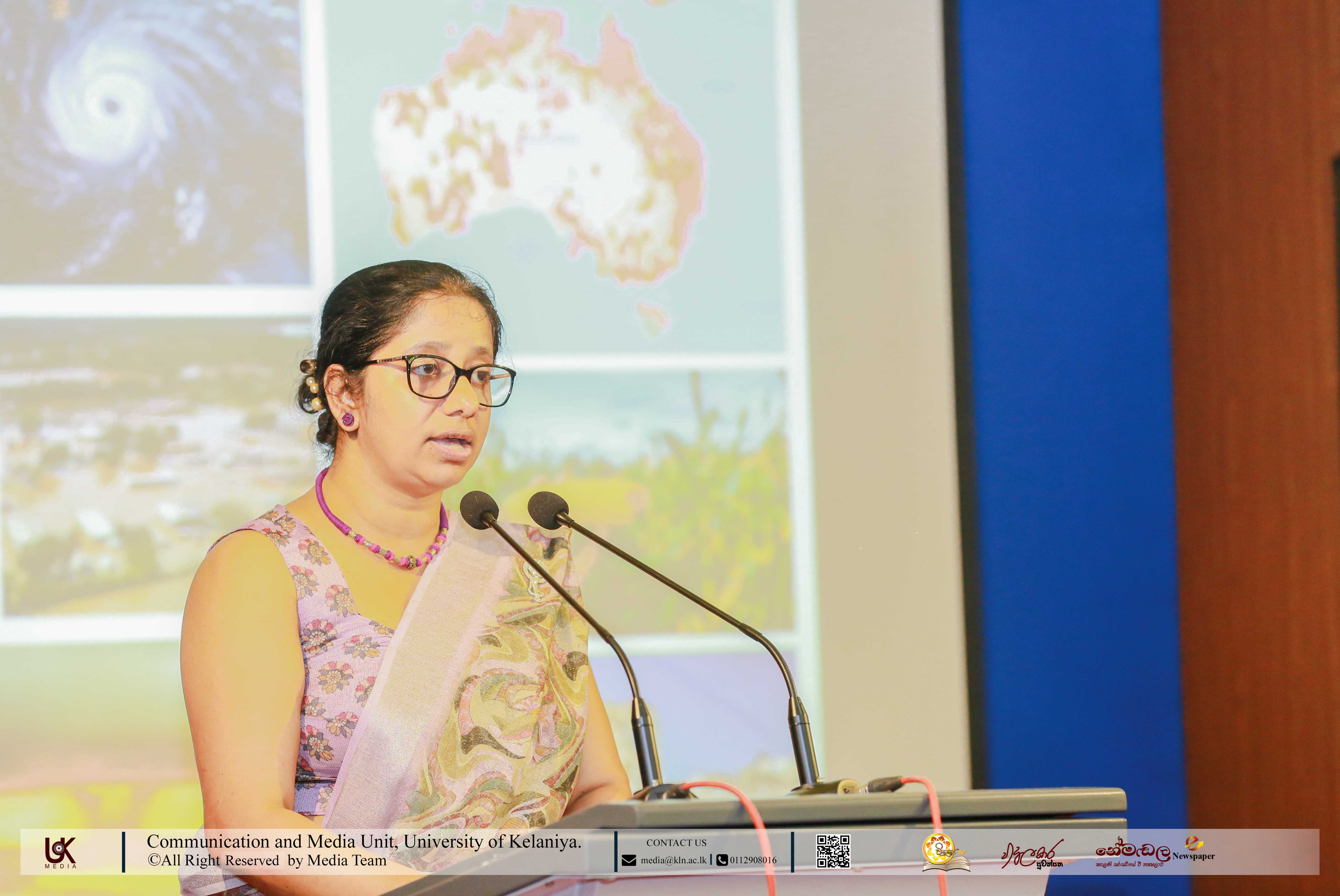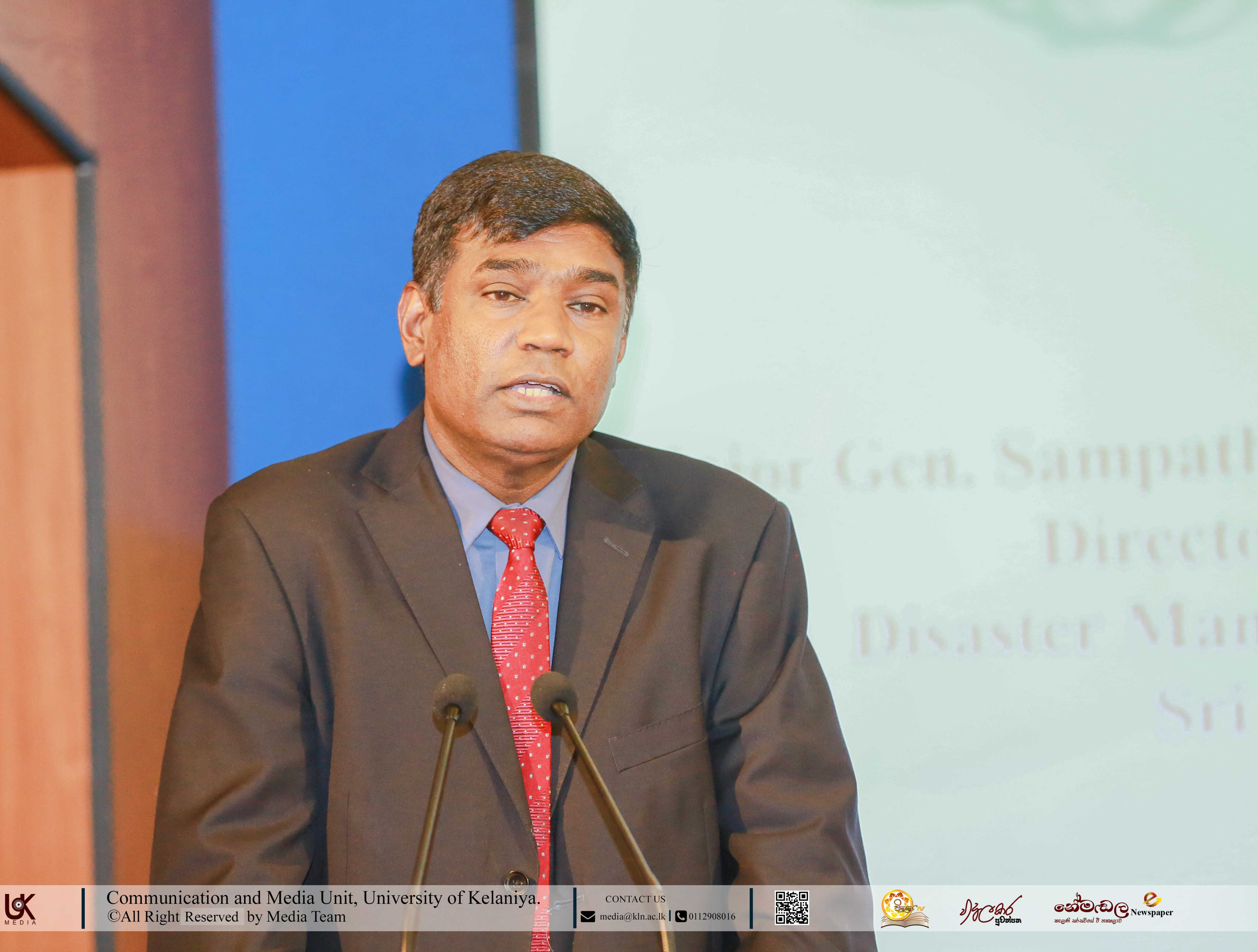 The keynote address was delivered by Dr Saseeka Wijesekara (PhD. in Spatial Sciences), Senior Lecturer, Department of Geography, University of Kelaniya, who highlighted the increasing relevance of spatial sciences and geospatial technologies in disaster management, planning, and policy formulation. The Chief Guest, Major General Sampath Kotuwegoda ndc IG (Retd.), Director General of the Disaster Management Centre (DMC), Sri Lanka, stressed the need for strong collaboration between academic institutions and national agencies to enhance disaster preparedness, early warning systems, and risk reduction strategies in Sri Lanka.