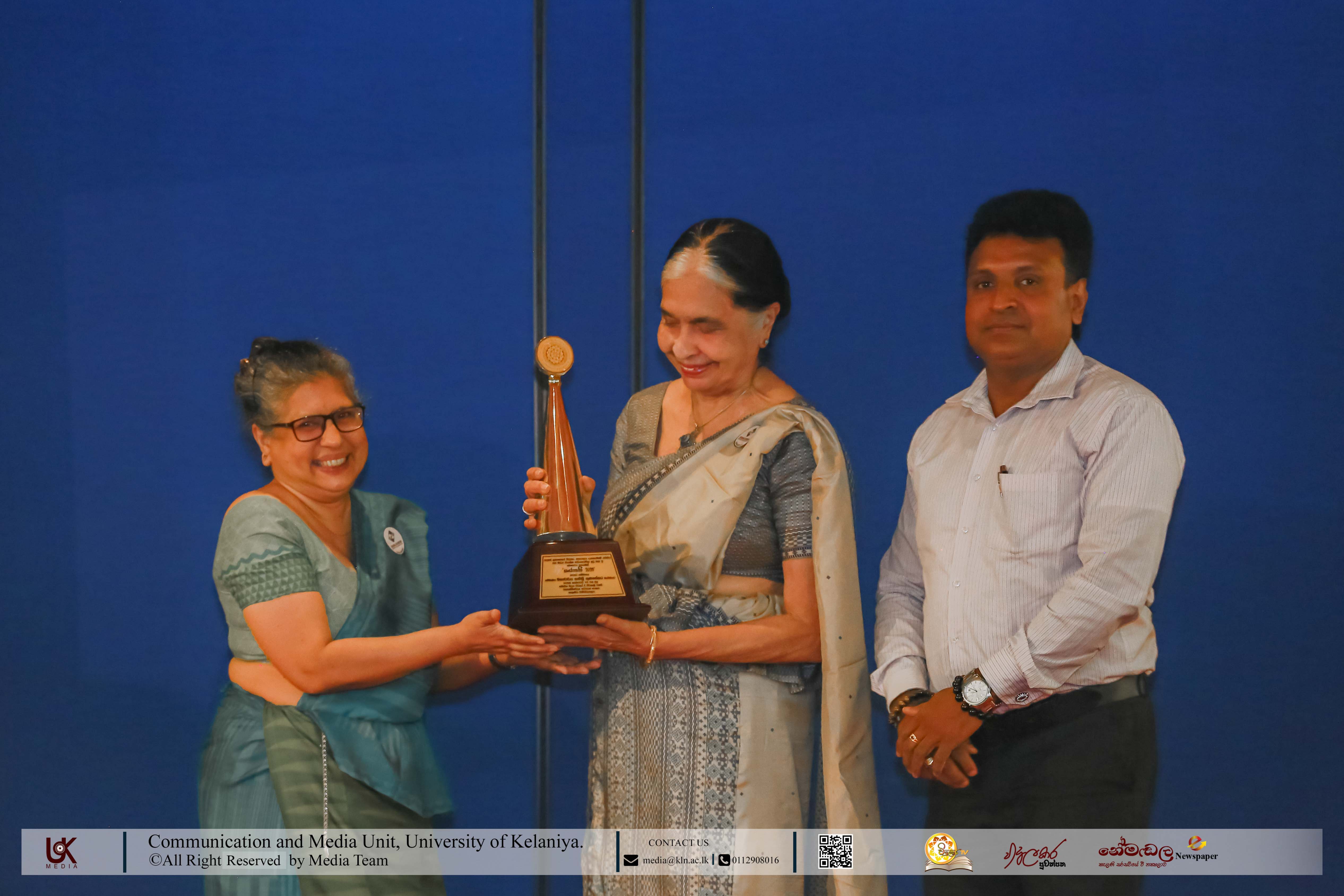 The Harasara Awarding Ceremony, now in its 19th year, honoured distinguished personalities for their invaluable contributions to the advancement of communication and media studies in Sri Lanka. The awardees were Professor Wimal Dissanayake, one of the founding lecturers of the Department of Mass Communication; Emeritus Professor Savithri Gunasekara, Faculty of Law, University of Colombo; and Mr Wijayananda Jayweera, Senior Journalist. The awards were presented by Senior Professor Nilanthi de Silva, Vice-Chancellor of the University of Kelaniya. Professor Wimal Dissanayake attended the event via Zoom from the USA, while Emeritus Professor Savithri Gunasekara and Mr. Wijayananda Jayweera addressed the gathering, sharing reflections on their professional journeys and contributions to the field.
